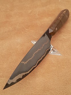 Guerrero is a mid to large sized hunting, camping style knife made from W-1 high carbon tool steel and sporting a beautiful clay quenched Hamon